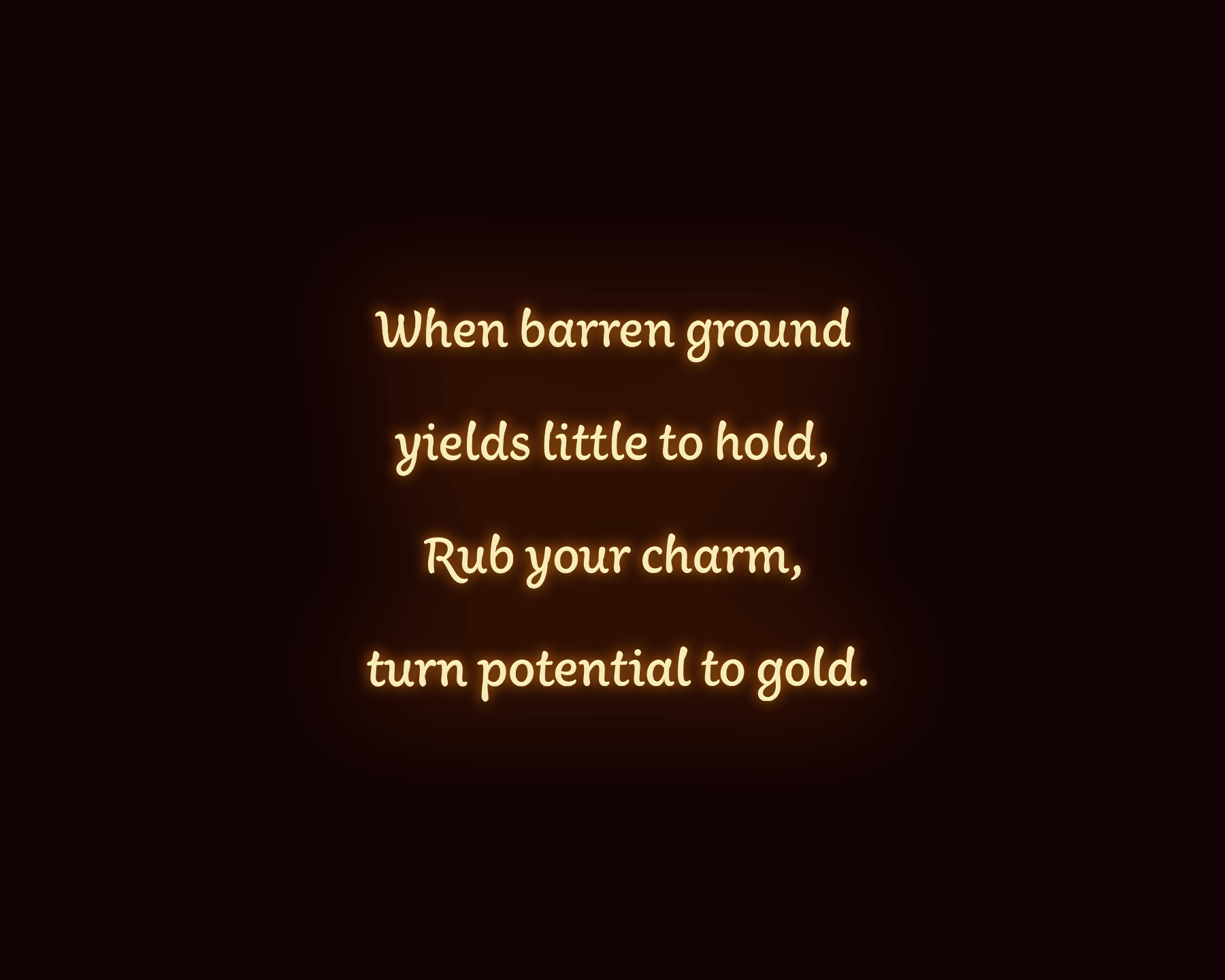 When barren ground yields little to hold, Rub your charm, turn potential to gold.
