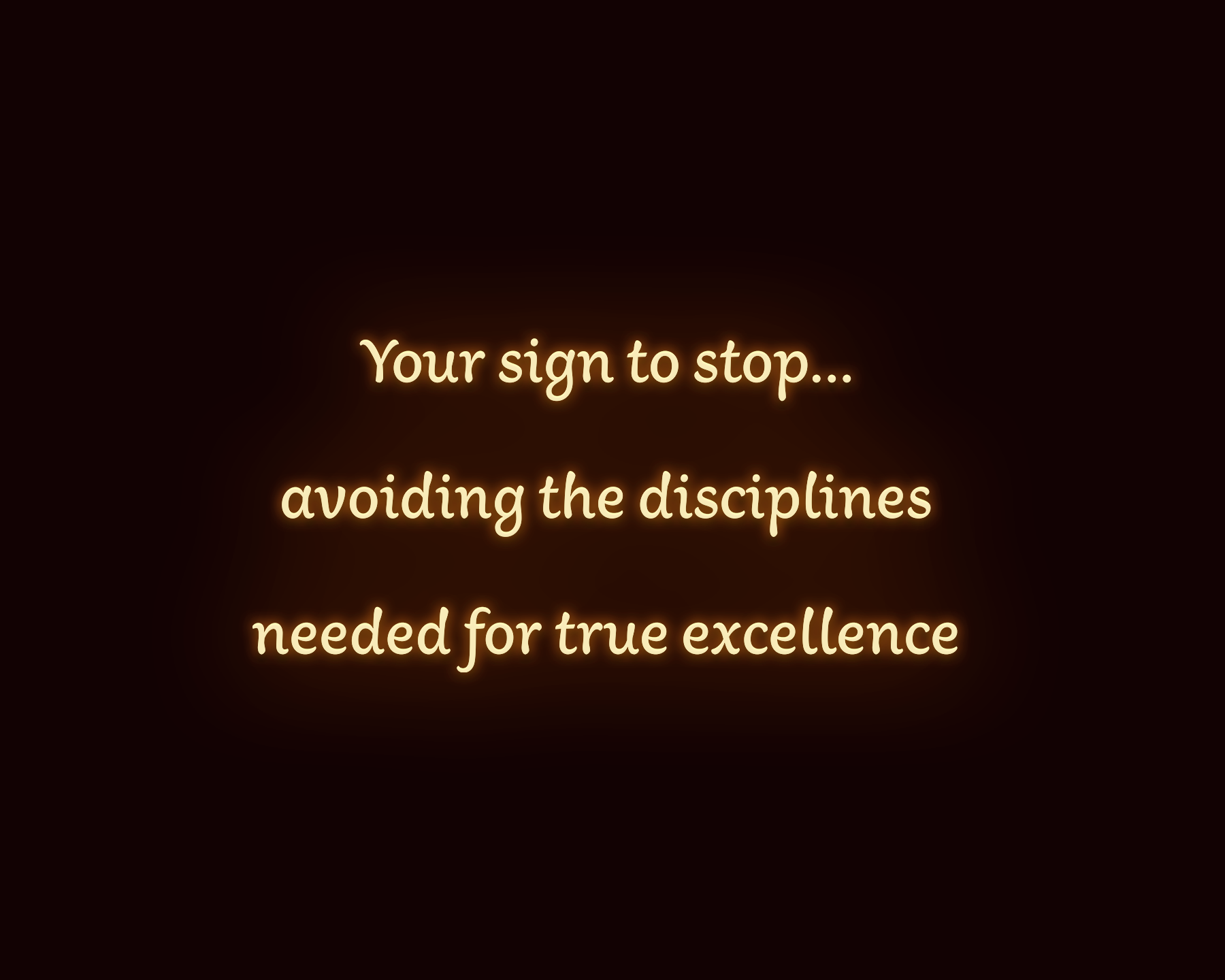 Use when you’re done avoiding the discipline required for true excellence.