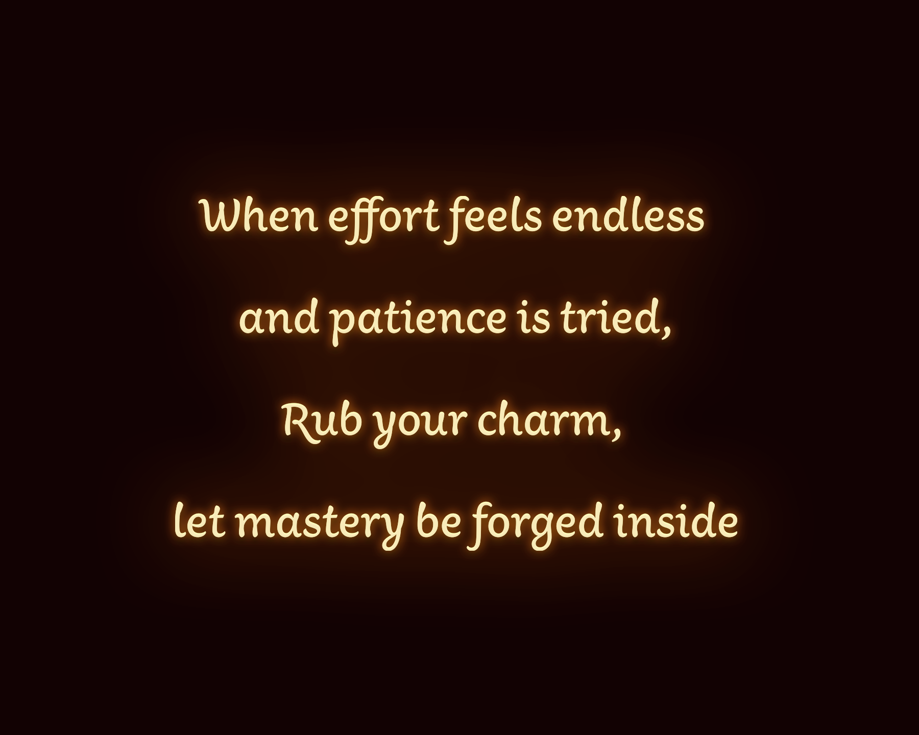 When skills feel crude, and focus is thin, Rub your charm, let diligent mastery begin.