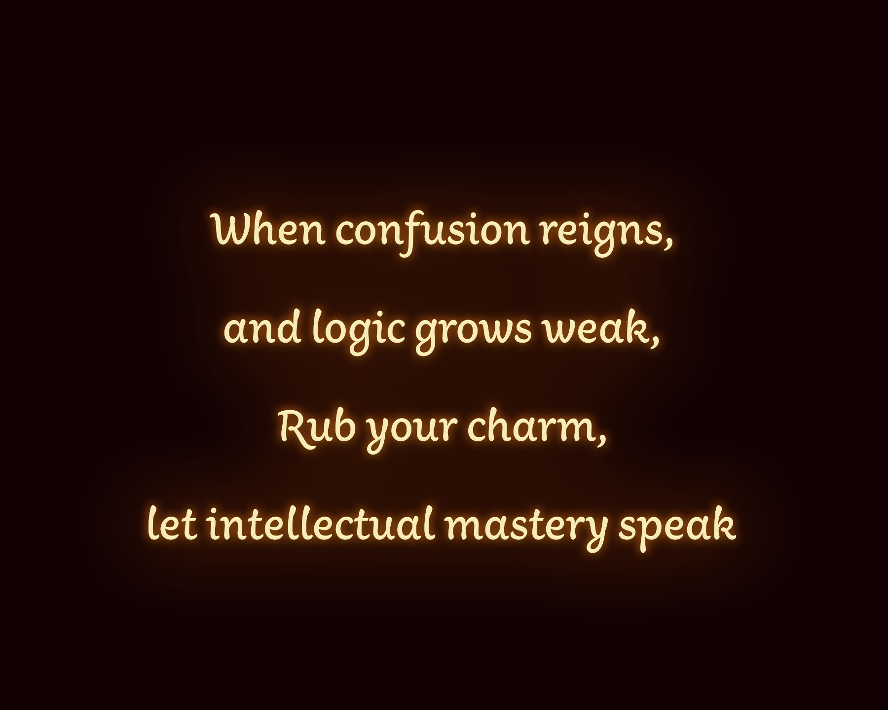When confusion reigns, and logic grows weak, Rub your charm, let intellectual mastery speak.