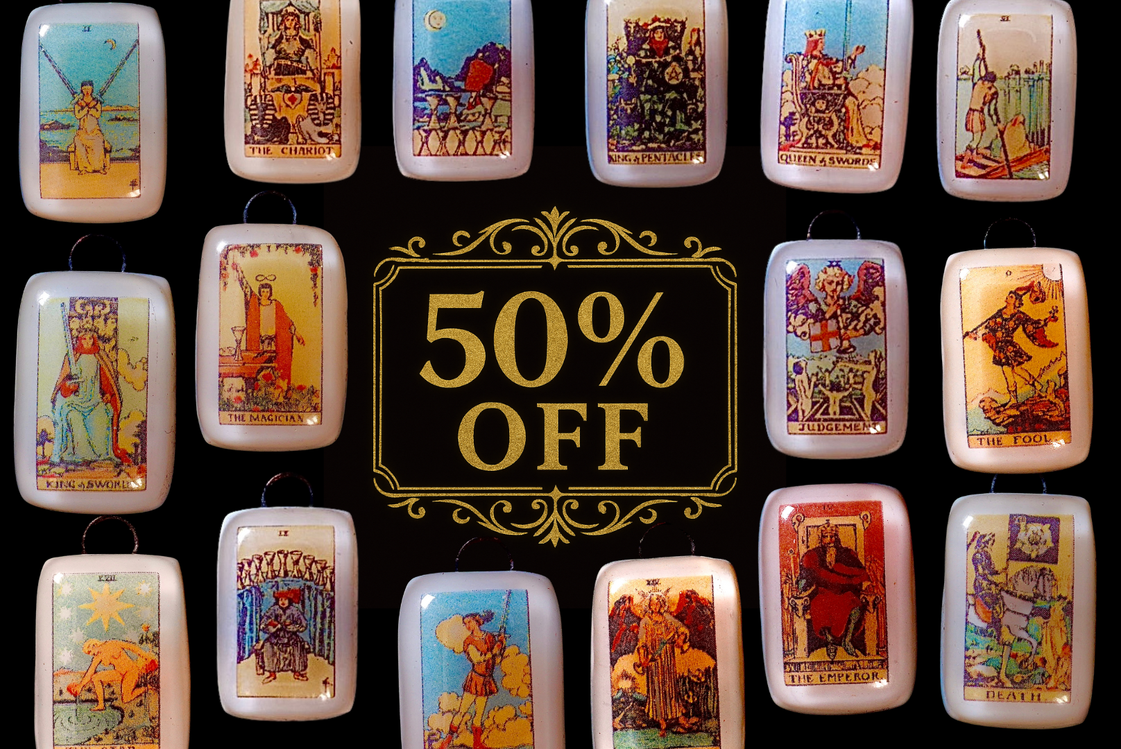 🪞 -We pick one Tarot Card Charm for you, encased and sealed in glass