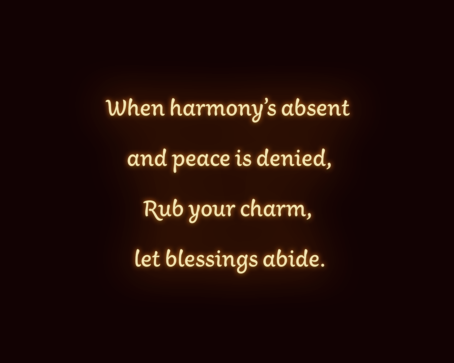 When harmony’s absent and peace is denied, rub your charm, let blessings abide.