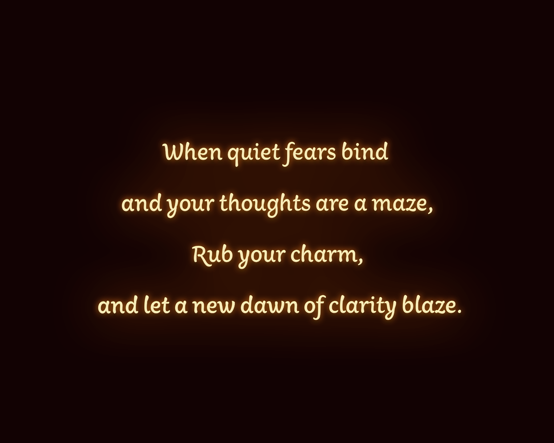 When quiet fears bind and your thoughts are a maze,Rub your charm, and let a new dawn of clarity blaze.