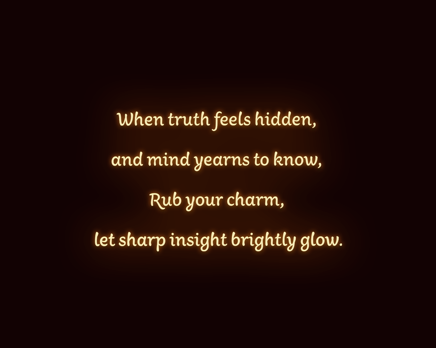 When truth feels hidden, and mind yearns to know, Rub your charm, let sharp insight brightly glow.