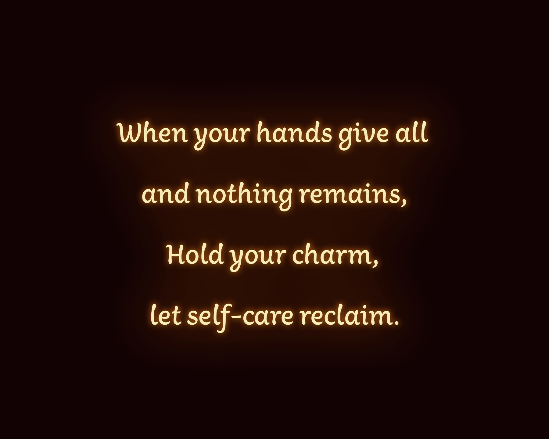 When your hands give all and nothing remains, Hold your charm, let self-care reclaim.