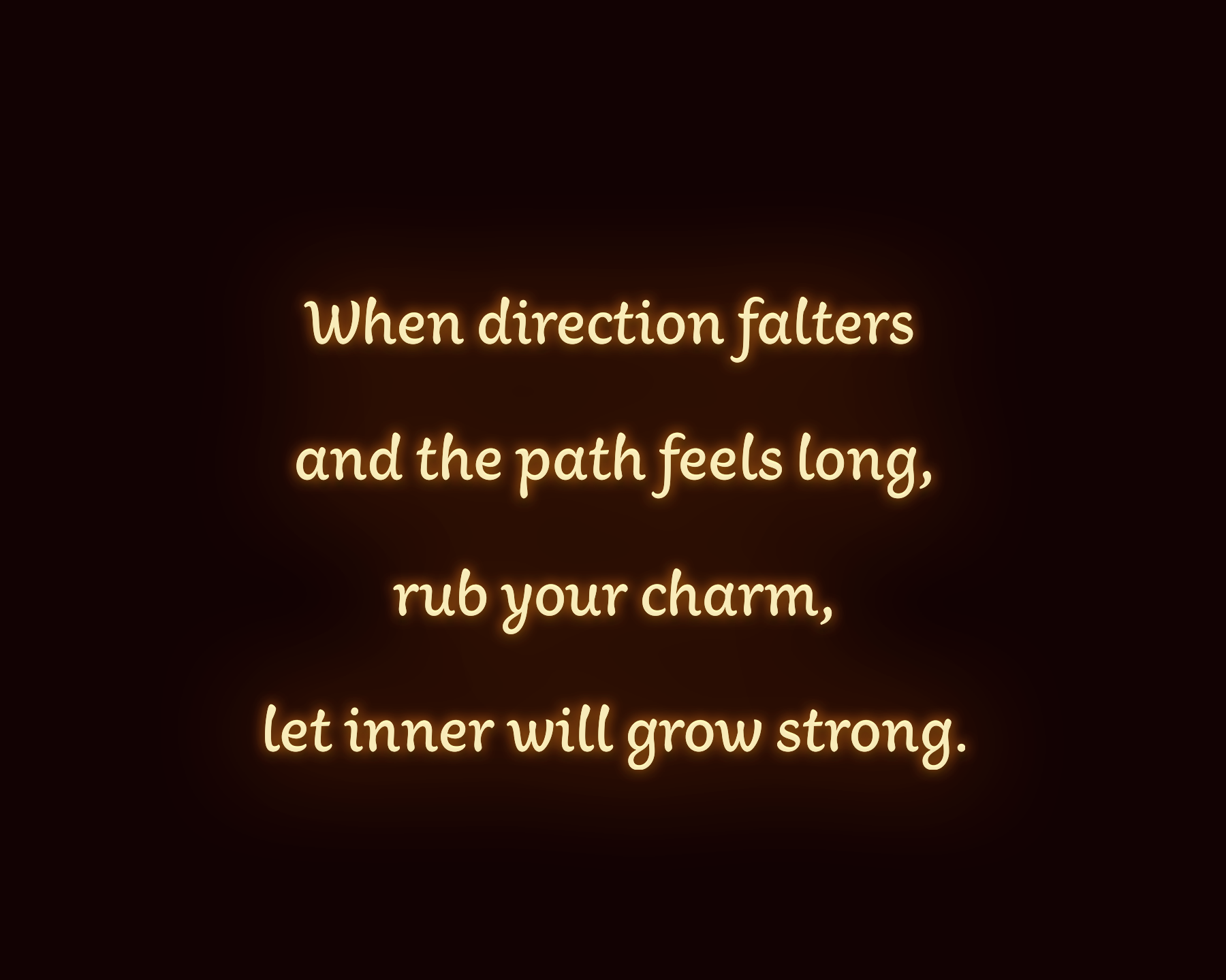 When purpose falters, and the path feels long, rub your charm, let inner will surge strong.