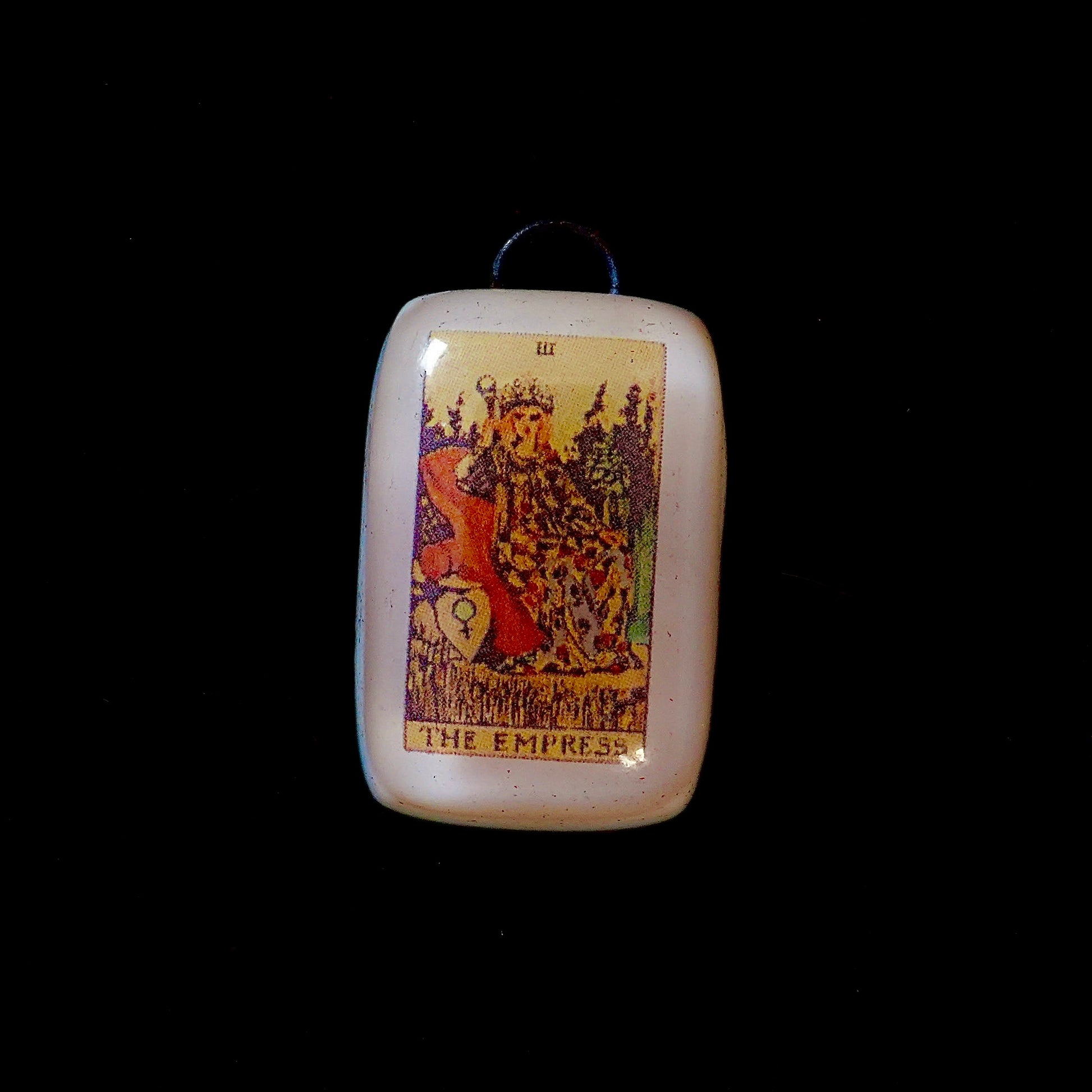 This handcrafted fused-glass pendant features The Empress, the third card of the Major Arcana. She is the mother of magic. The queen of becoming. The fertile ground where ideas bloom and hearts soften.