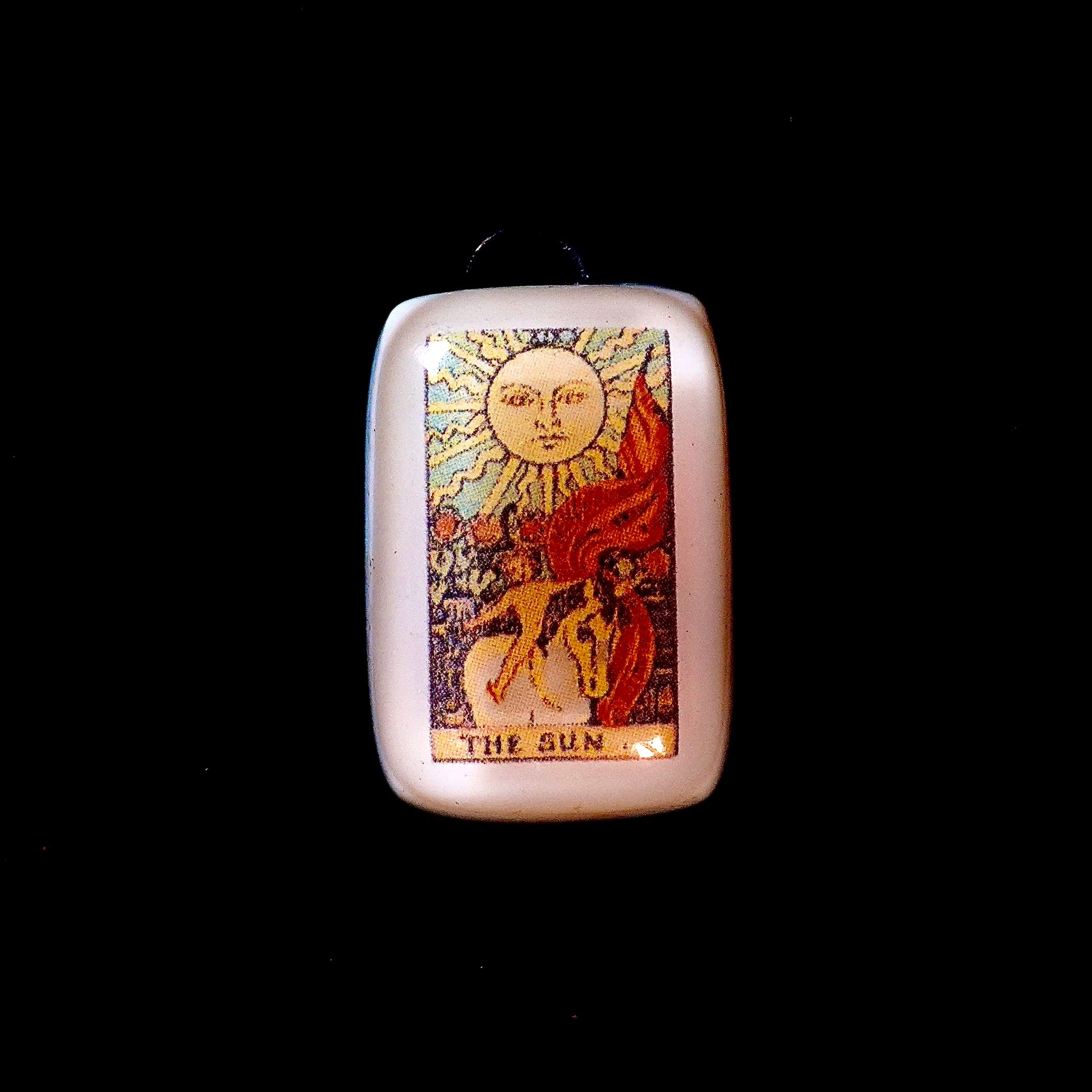 This handcrafted fused-glass pendant features The Sun, the nineteenth card of the Major Arcana.