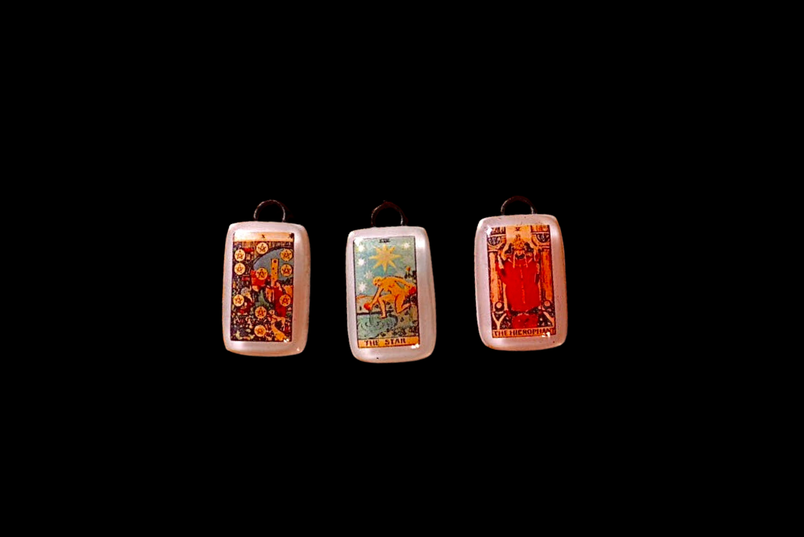 Select the single energy you wish to conjure: love, clarity, courage, abundance, and receive your chosen card, sealed in glass, as a forever talisman.